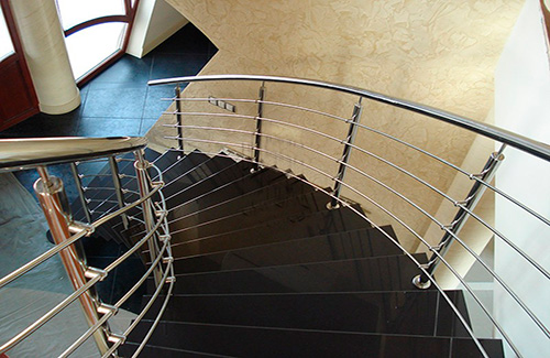 Подходят для оформления офиса, дома, а также ТЦ, ресторана. Ограждение выглядит невероятно стильно, экономит место в помещении. Нержавейка придает лестнице надежность и прочность.